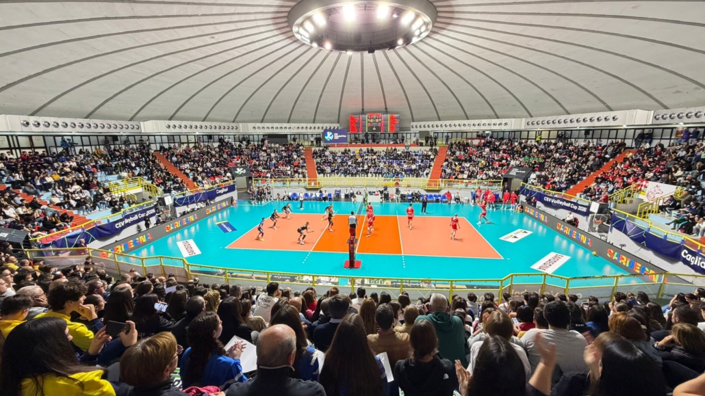 Gas Sales Bluenergy Volley Piacenza won the first leg of the CEV Cup Round of 16 with a 3–1 victory over the Czech team Jihostroj České Budějovice, in a match played in Cagliari at a sold-out PalaPirastu filled with a festive atmosphere.
